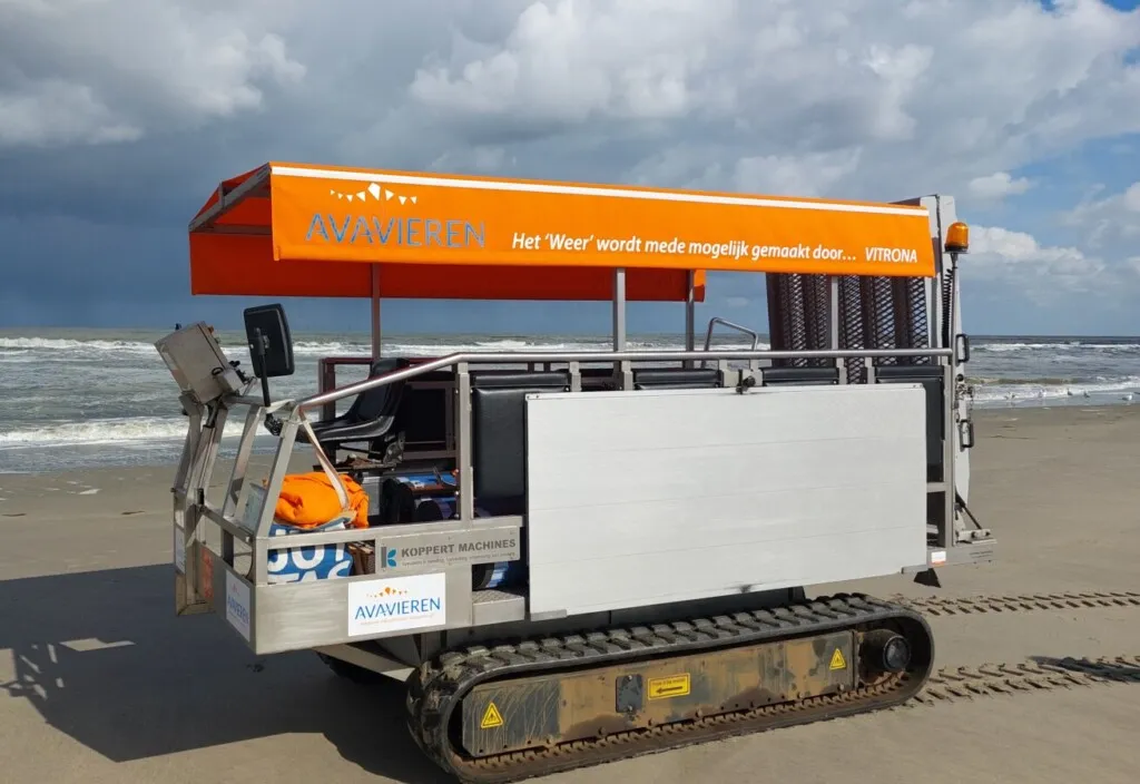 Het weer wordt steeds uitnodigender om er een dagje op uit te trekken en te genieten van het strand, de zee en de duinen. U kunt ook per dagdeel gebruikmaken van alle hulpmiddelen. Dankzij een prachtige donatie van Fonds 1818 werd Stichting Avavieren in de gelegenheid gesteld om een nieuwe duofiets aan te schaffen. Het voordeel van deze elektrisch ondersteunde duofiets is dat de medepassagier mee kan trappen, maar dat de trappers ook vastgezet kunnen worden, waardoor er niet meegefietst hoeft te worden. Dit is een groot voordeel voor sommige mensen met problemen aan de benen. U bent van harte welkom om een afspraak te maken om eens een mooie tocht door de duinen te maken. De eerste rit met de elektrische strandrups is geboekt en gereden met een nieuw zonnescherm. Vitrona uit Naaldwijk heeft het doek verzorgd en van tekst voorzien, zodat iedereen weer droog en beschermd tegen de zon kan genieten tijdens een rit over het strand. Dit markeert een prachtig begin van een nieuw seizoen. Stichting Avavieren is heel blij en dankbaar voor de fantastische ondersteuning van fondsen en het Westlandse bedrijfsleven!
